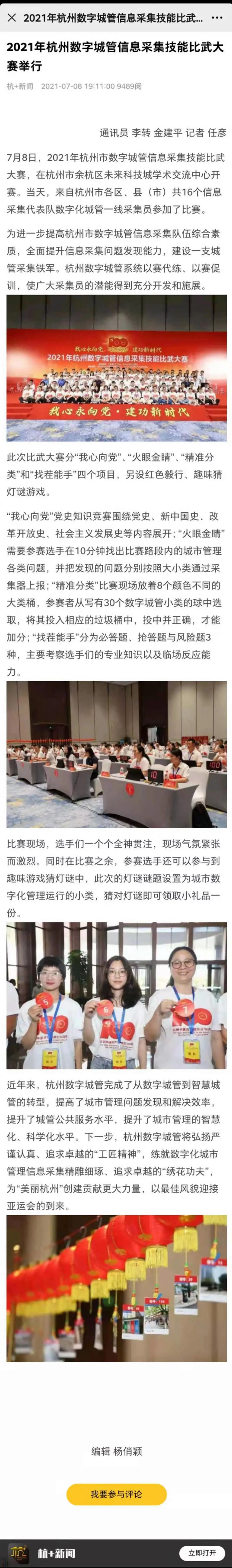 7月8日,2021年杭州市數(shù)字城管信息采集技能比武大賽在杭州市余杭區(qū)未來(lái)科技城學(xué)術(shù)交流中心開(kāi)賽。