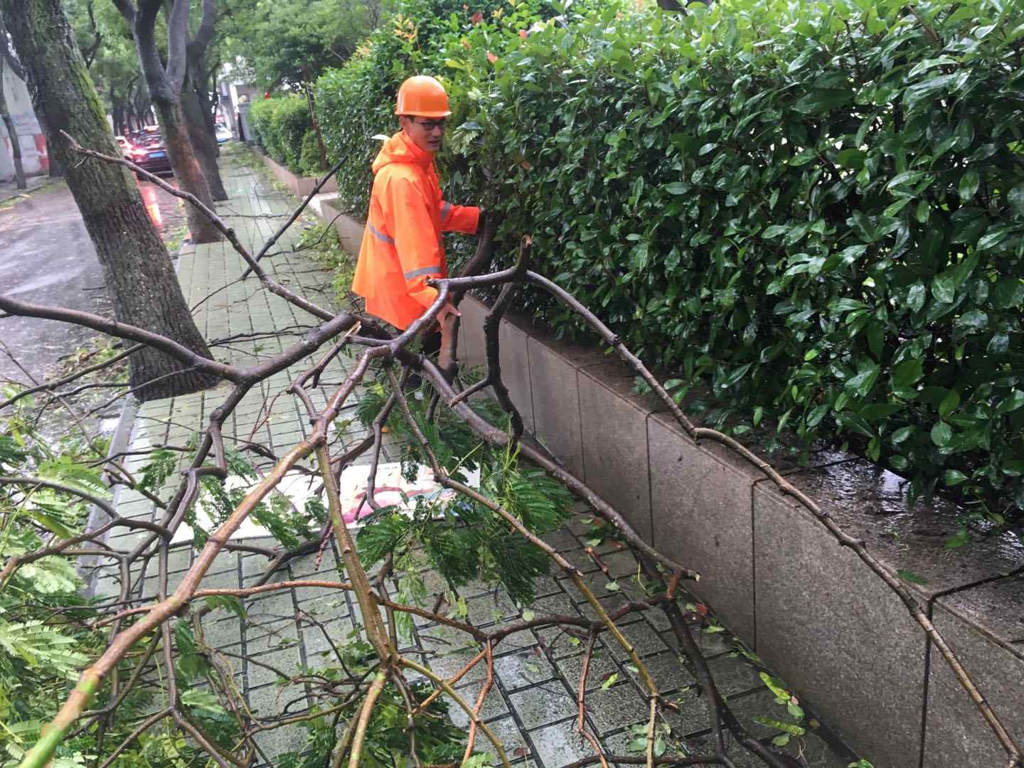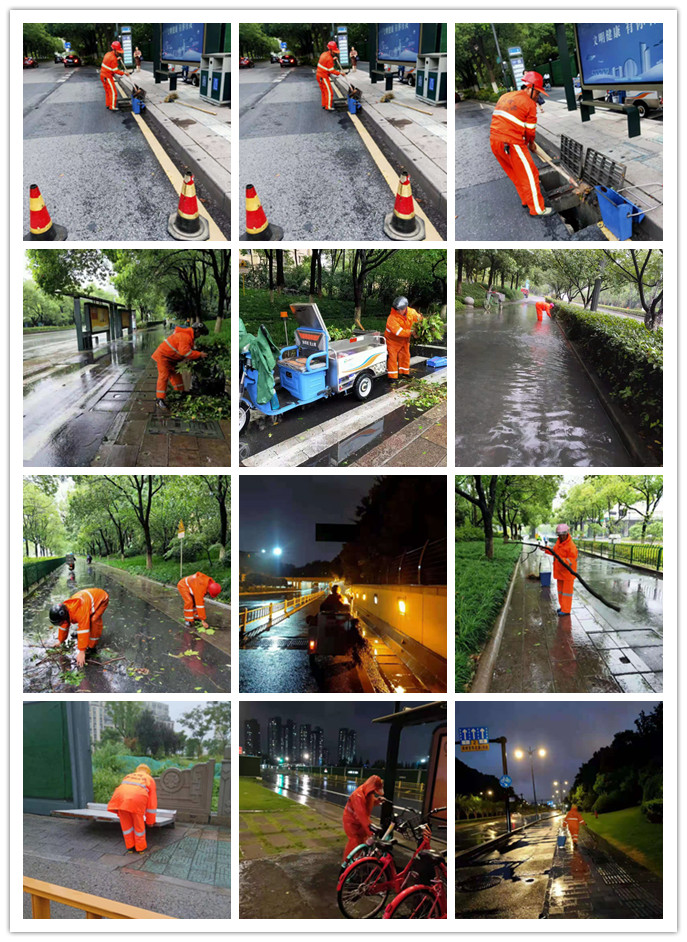 上城服務(wù)部為落實(shí)此次抗臺(tái)防汛任務(wù),在臺(tái)風(fēng)來臨前,對(duì)邊轄區(qū)內(nèi)的窨井進(jìn)行了排查清掏,加強(qiáng)了道路積泥積塵的清洗,清除枯枝落葉、垃圾雜物,提前做好應(yīng)對(duì)準(zhǔn)備。在防汛任務(wù)中,服務(wù)部全體員工堅(jiān)守崗位,逆風(fēng)而行,加強(qiáng)路面巡查,排除安全隱患,清除斷枝落葉,在積水點(diǎn)設(shè)置警示標(biāo)志,排除積水。