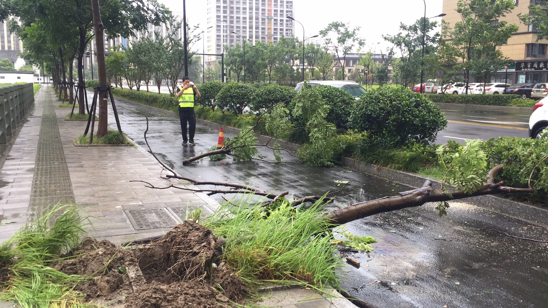 蕭山服務(wù)部對(duì)城市街道進(jìn)行巡查,大樹被臺(tái)風(fēng)刮倒,暴雨使路面積水,工作人員及時(shí)根據(jù)實(shí)際情況做出整改方案,加快城市恢復(fù)速度。