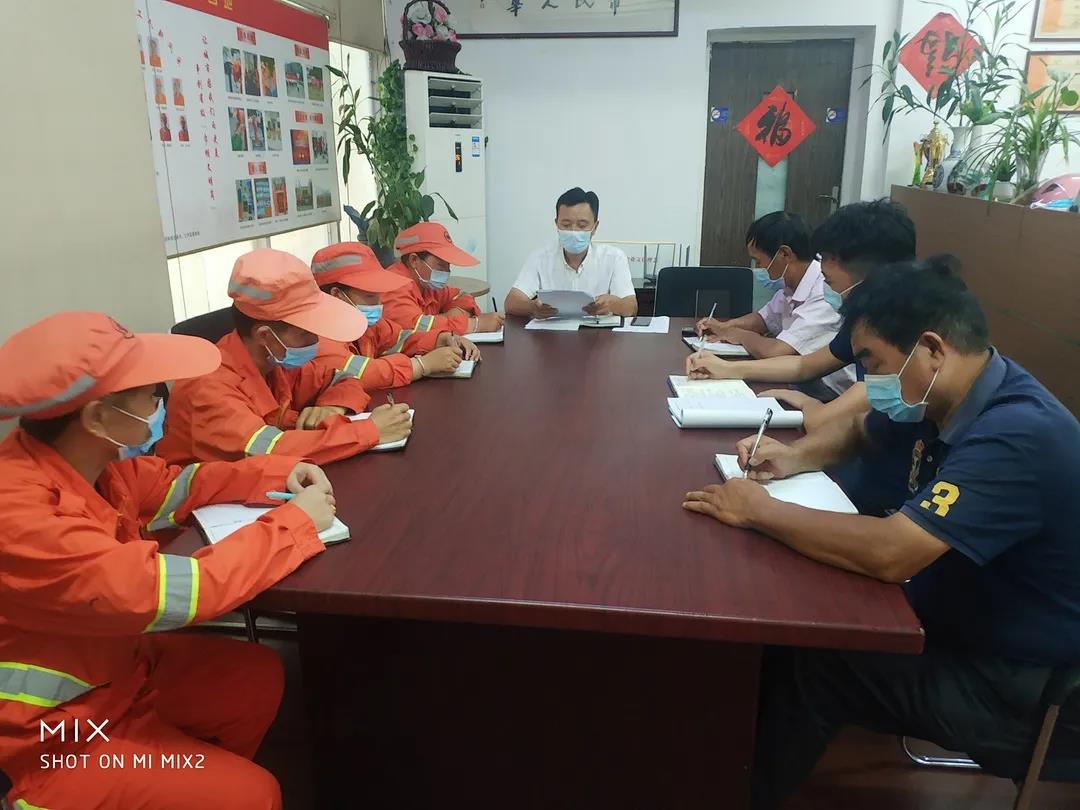 巾幗西麗集團(tuán)城西服務(wù)部陳勝利經(jīng)理召開管理員班組長(zhǎng)會(huì)議,提煉領(lǐng)會(huì)文件精神。