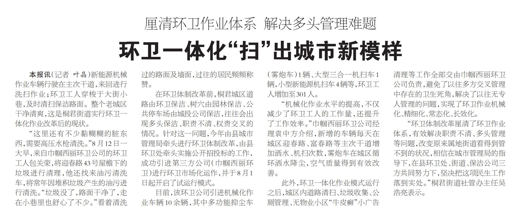環(huán)衛(wèi)一體化 “掃”出城市新模樣