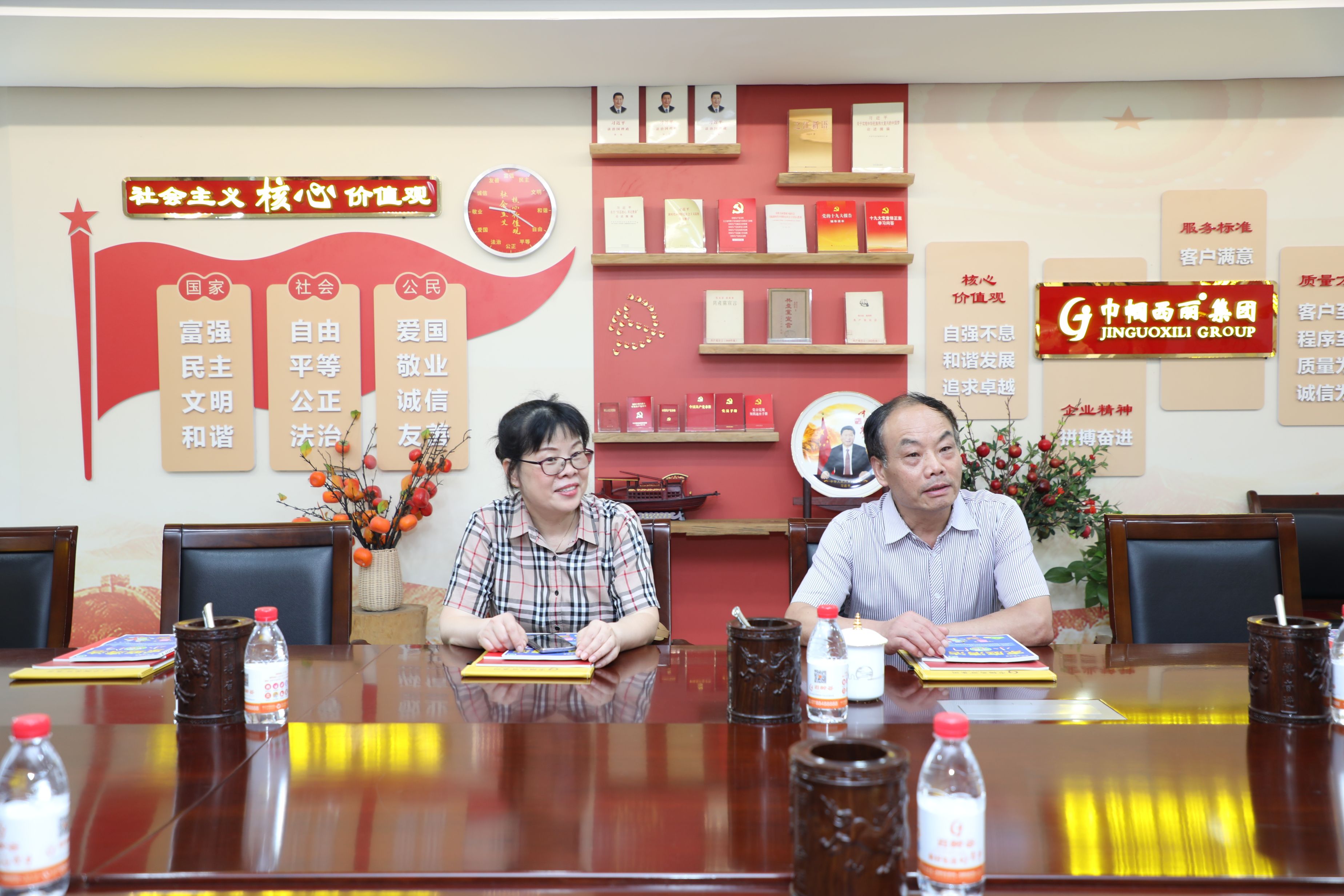 參觀結(jié)束后,雙方來到會議室進行座談會,就企業(yè)建設情況、運營狀況等方面進行了深入交流。王會長提出合理化寶貴意見,指出發(fā)展新思路,望巾幗西麗繼續(xù)做優(yōu)做強,起到行業(yè)引領作用。