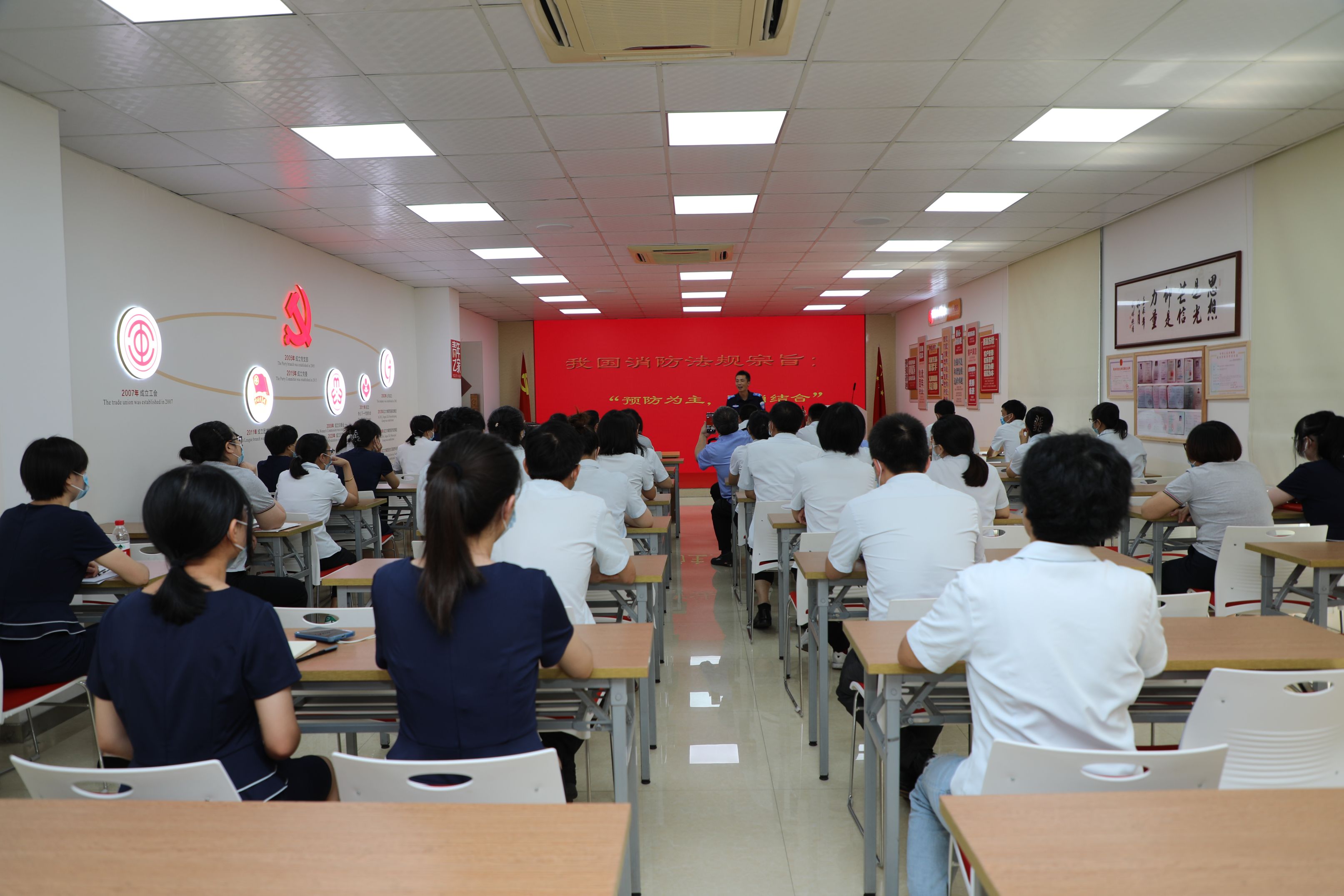 消防中心汪旺主任以近年來經(jīng)典火災案例為切入點,詳細講解了辦公場所、家庭社區(qū)以及社會車輛的易燃易爆情況。真實慘烈的火災現(xiàn)場視頻,讓每一個人都觸目驚心。全體員工認真聆聽汪主任講解常見火災的撲救方法、組織疏散逃生的基本要領以及如何正確撲救和控制初起火災的實用知識,切實增強了大家應對突發(fā)火災事件的能力。