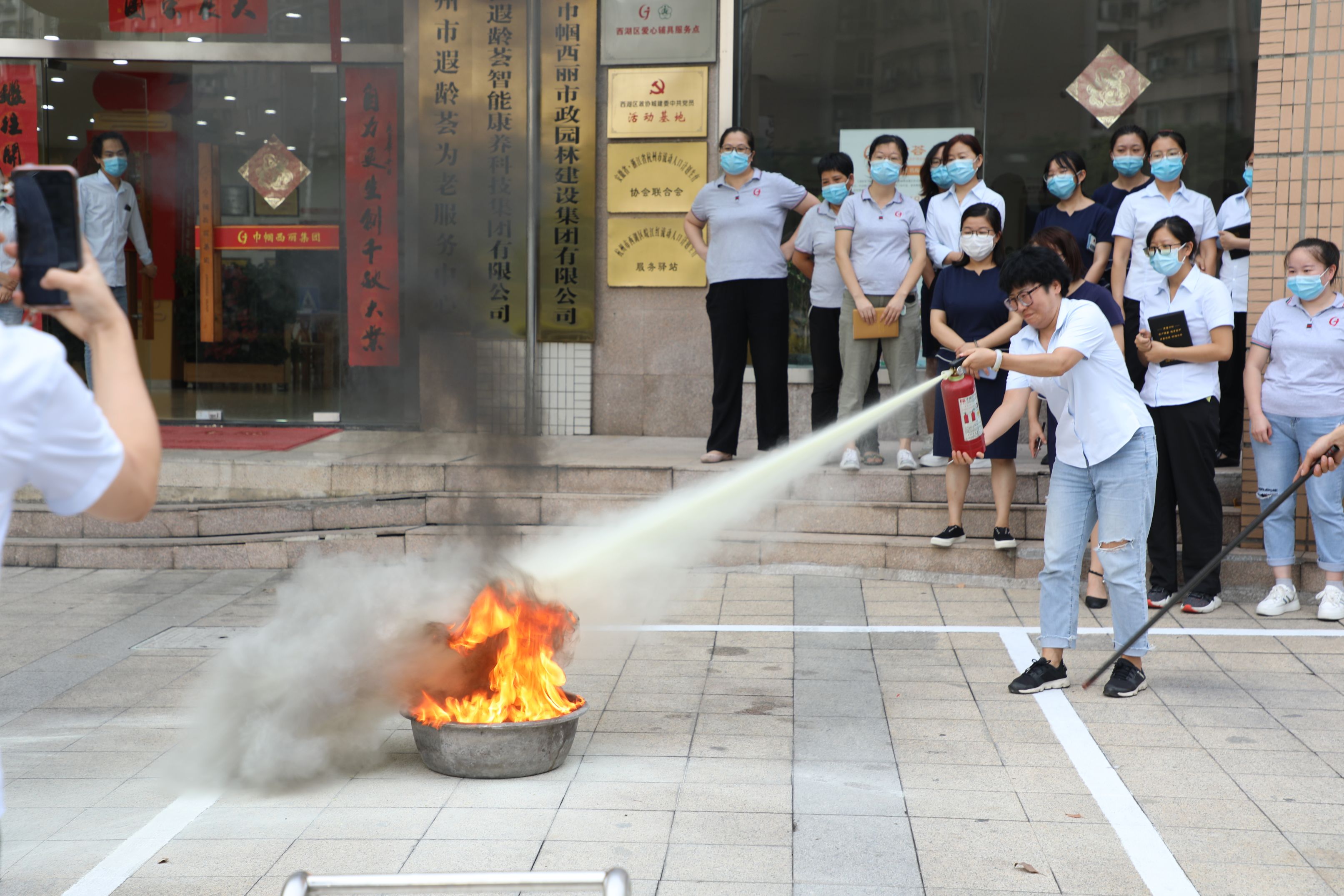 消防安全事關員工生命安全和公司財產安全,為強化員工的實操能力,理論學習后,參與培訓的員工在培訓老師的指導下進行了消防模擬演練。通過現(xiàn)場演練,大家掌握了正確的逃生姿勢,以及一搖二拔三噴的滅火器使用方法。