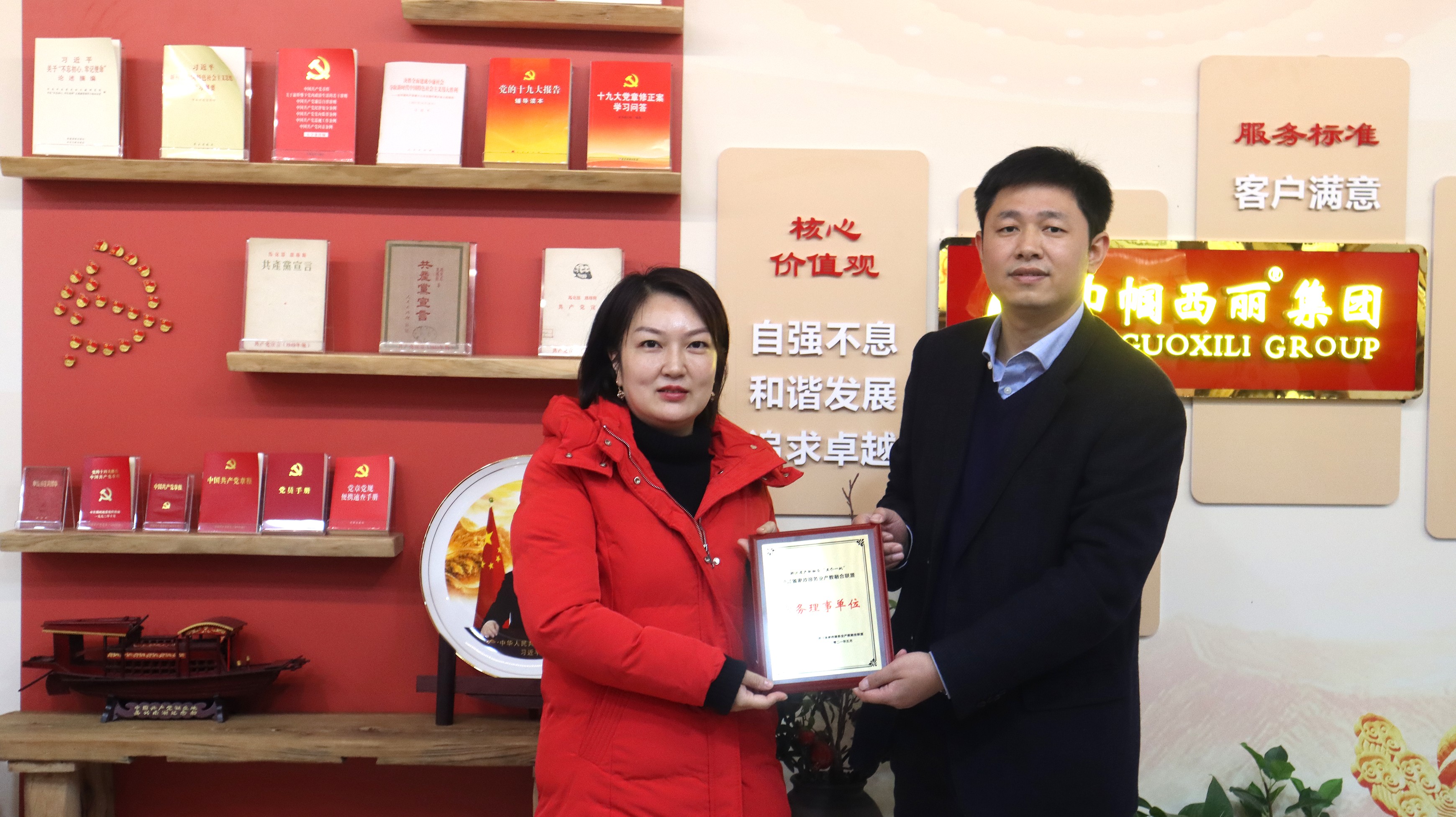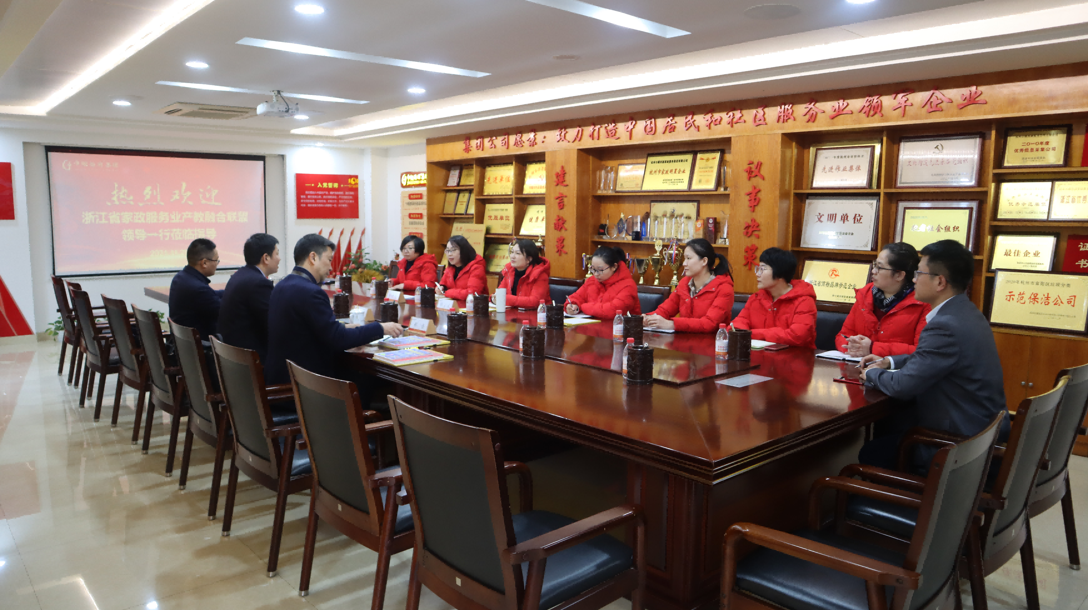調研組一行詳細了解了巾幗西麗集團發(fā)展歷程及家政、市政板塊運營情況,一致認為企業(yè)發(fā)展方向明確,思路清晰,予以高度肯定和贊揚,并為公司授予“浙江省家政服務業(yè)產教融合聯(lián)盟成員單位”牌。