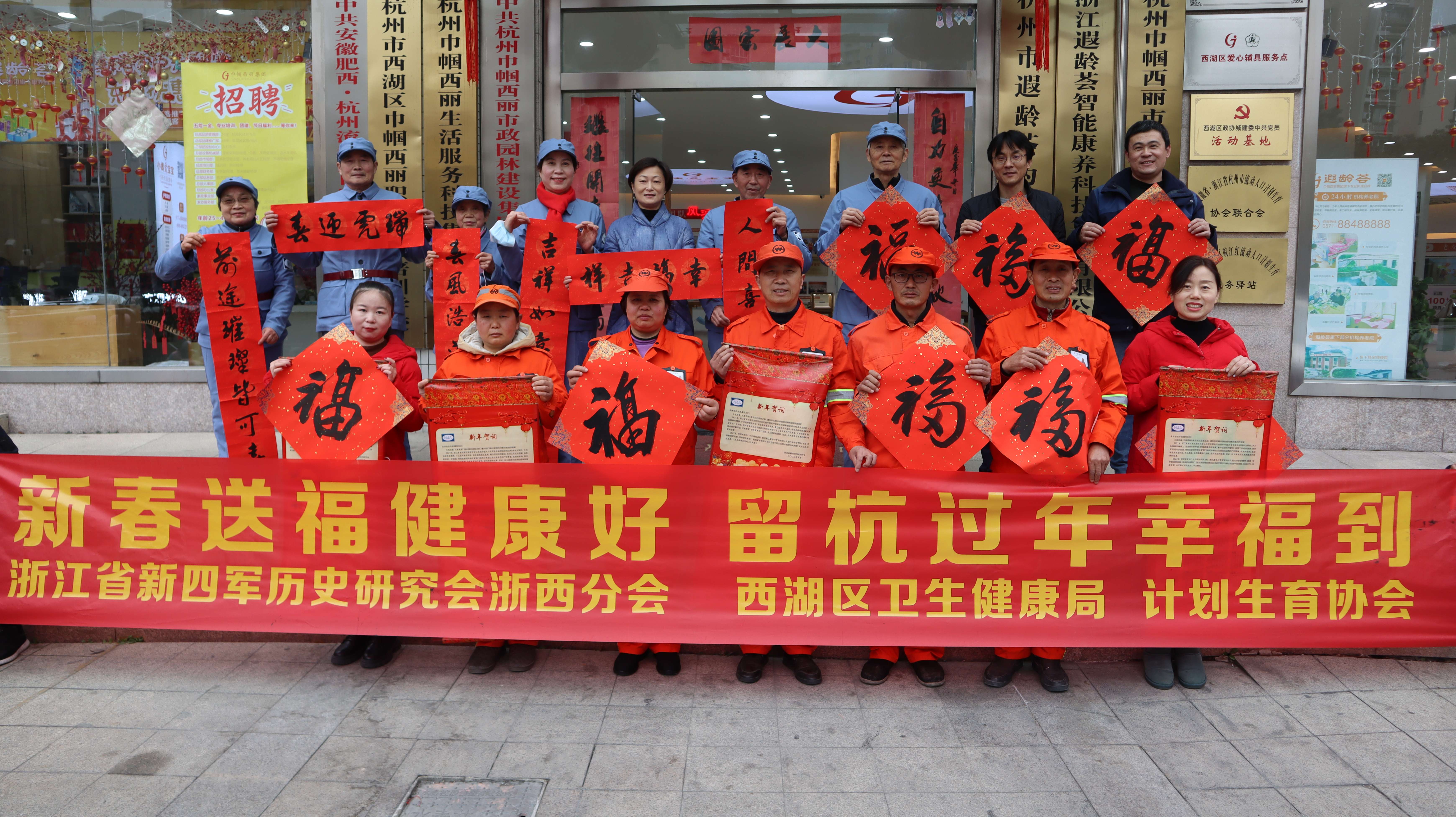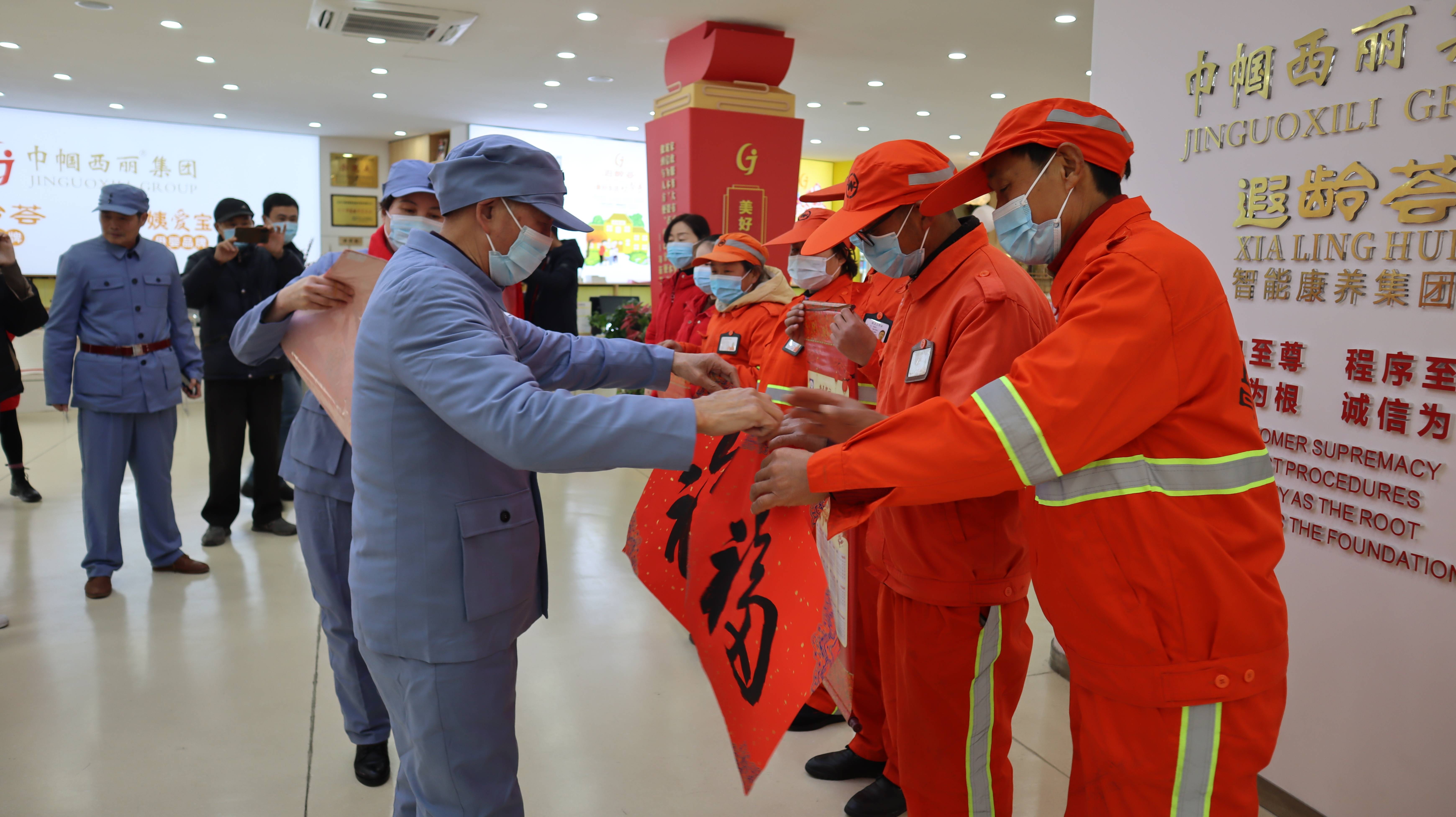農(nóng)歷新年來臨之際,浙江省新四軍歷史研究會浙西分會王副會長與老干部一起,向巾幗西麗集團(tuán)家政員工、一線環(huán)衛(wèi)工人送上防疫口罩,以及老干部們親手書寫的春聯(lián)、福字。