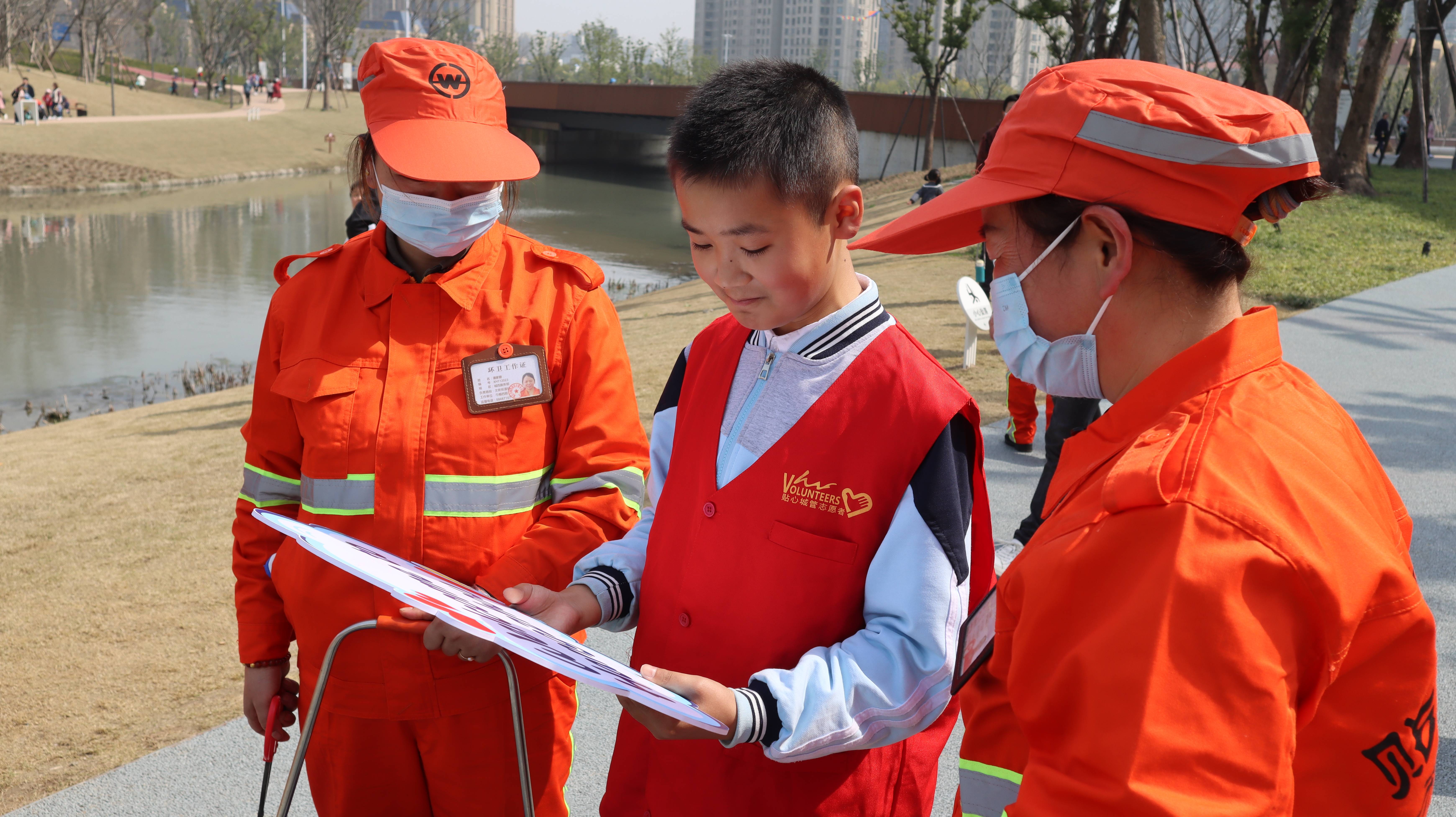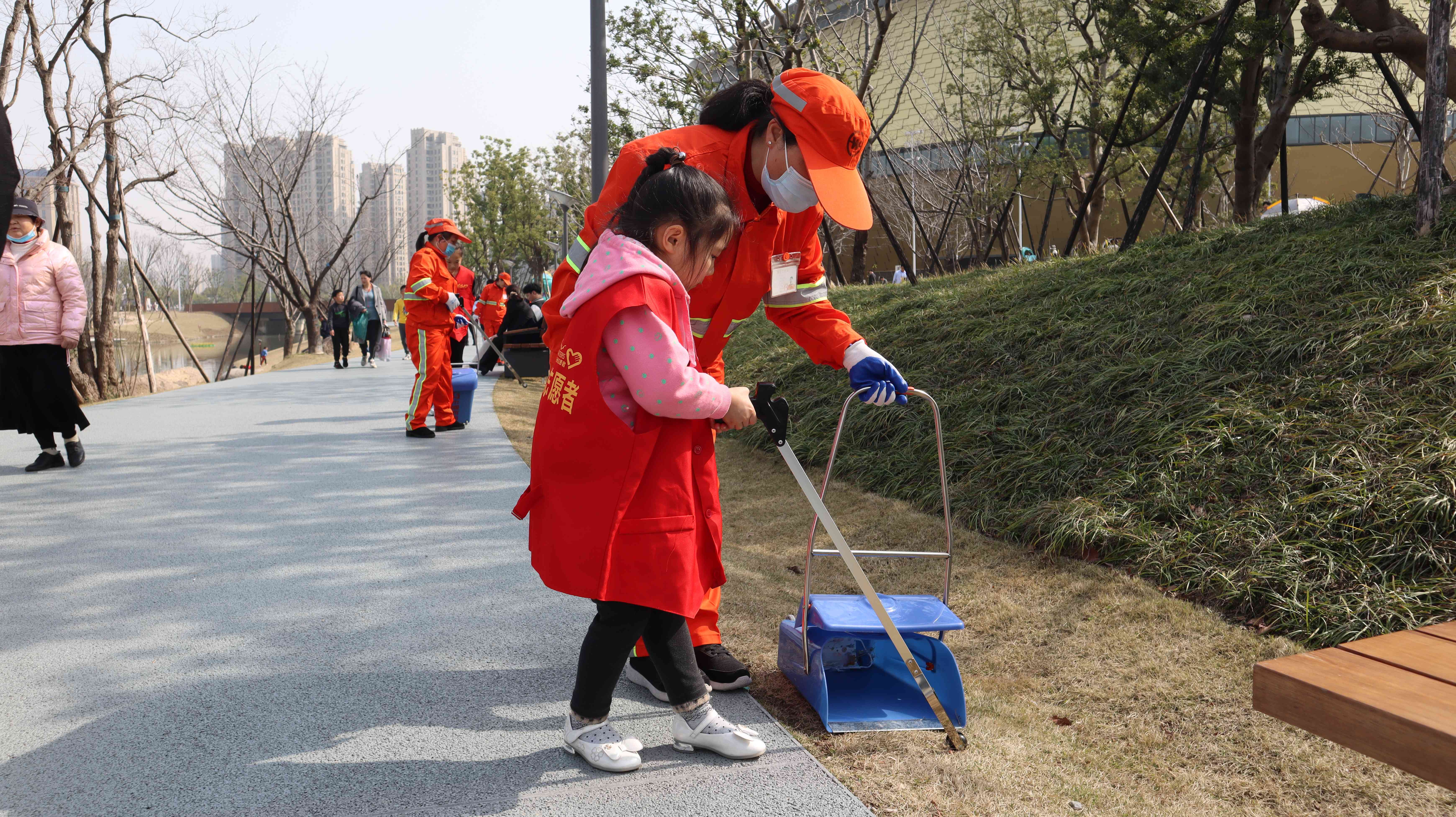 克難攻堅當先鋒,勇往直前迎亞運。小朋友們跟在環(huán)衛(wèi)工人們身后,手里拿著工具夾,認真拾起公園里的各類垃圾。“小環(huán)衛(wèi)工們”通過自己的親身感受,切身體會到了城市美容師每天工作的辛苦,更加知道了保護環(huán)境的重要性。