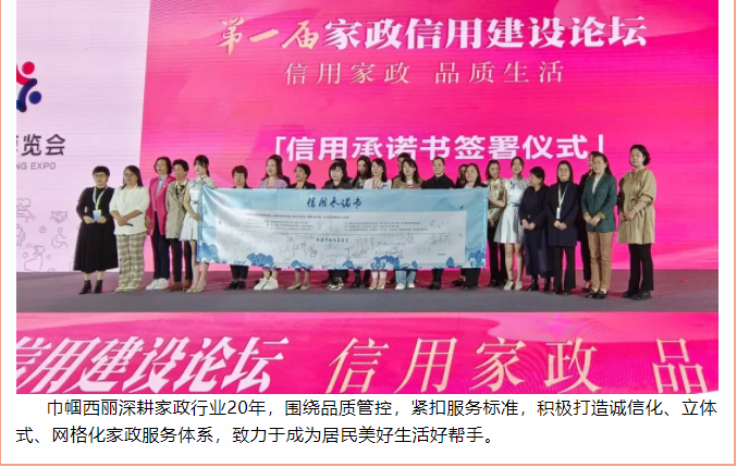 2023家政博覽會在北京展覽館舉辦,巾幗西麗集團(tuán)上臺簽署信用承諾書