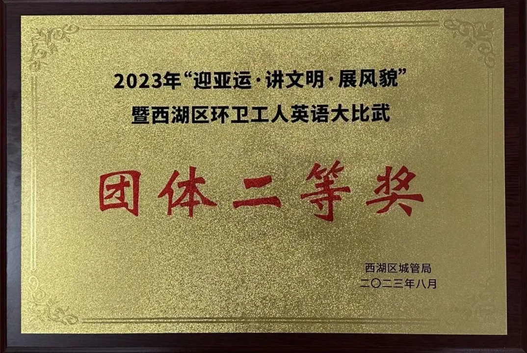 喜報丨巾幗西麗集團榮獲“西湖區(qū)環(huán)衛(wèi)工人英語大比武”團體二等獎