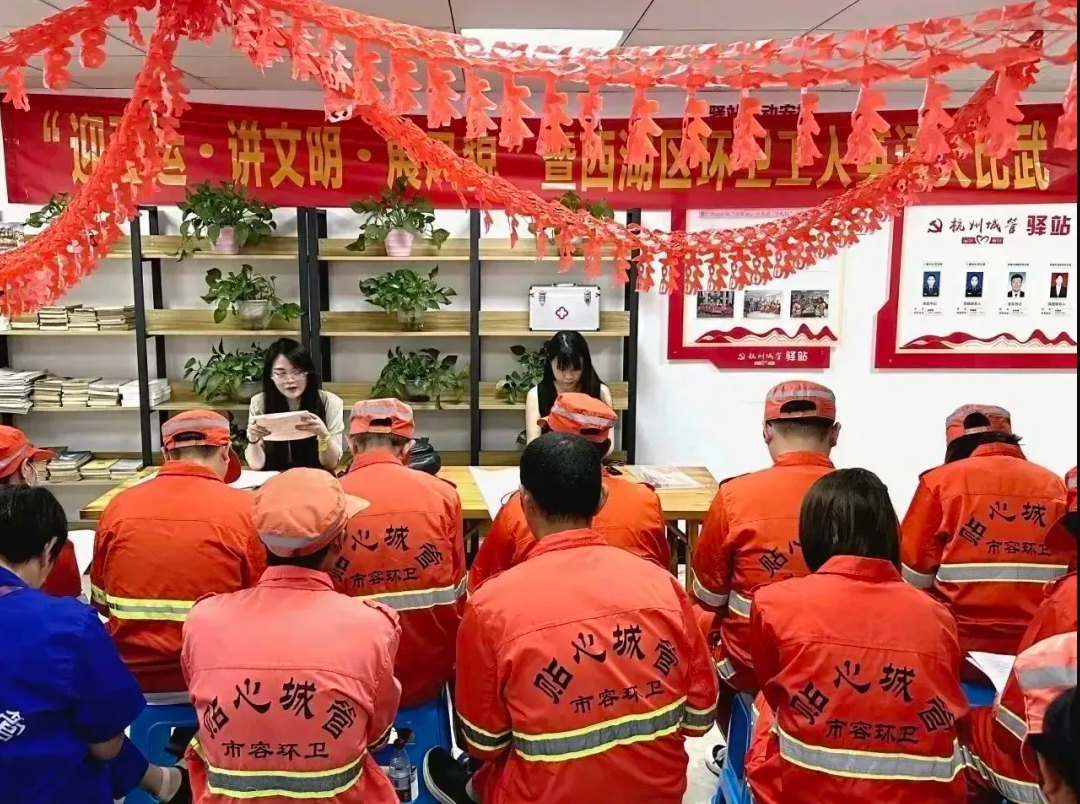 8月24日上午,由杭州市環(huán)衛(wèi)固廢中心指導(dǎo),西湖區(qū)城管局主辦的“迎亞運·講文明·展風(fēng)貌暨西湖區(qū)環(huán)衛(wèi)工人英語大比武”活動在杭州城管驛站慧仁家園南區(qū)黨群服務(wù)站舉辦,巾幗西麗集團派出2名環(huán)衛(wèi)代表參賽,進行精彩比拼,為集團贏得了“團體二等獎”。