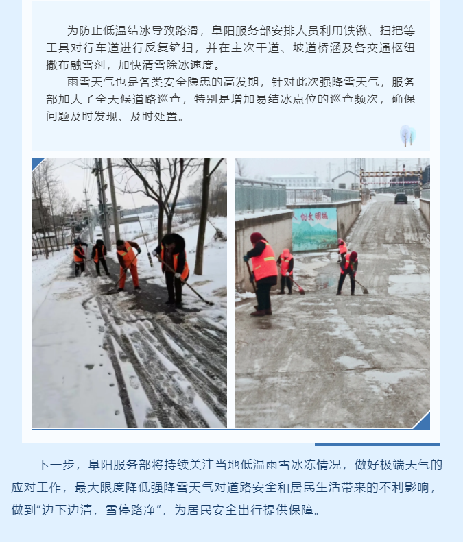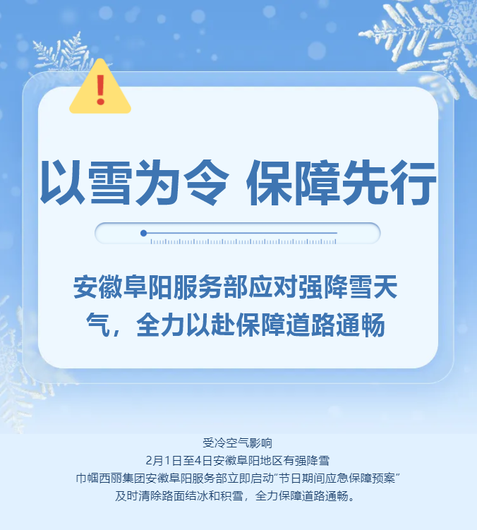 以雪為令 保障先行丨安徽阜陽服務(wù)部應(yīng)對(duì)強(qiáng)降雪天氣,全力以赴保道路通暢